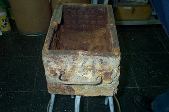 Esta mina se trataba de una caja metálica, herméticamente cerrada, que se llenaba con cartuchos de dinamita.