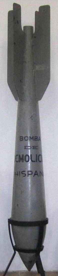 La bomba Hispania A-7, fabricada por la empresa Talleres de Guernica S.A. que la denominó "Bomba de Demolición". Su forma es fusiforme con cuatro aletas estabilizadoras. Sus características son: Longitud: 1800 cm. Diámetro: 350 cm. Peso: 100 Kg. Explosivo: Trilita Espoleta: de culote Hispania