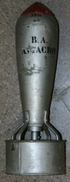 Bomba Oranovsky FAB de 10 libras expuesta en el Museo del Aire y gráfico extraído del libro citado Se distingue la cabeza roscada a la ojiva pintada en color rojo que, en la aviación rusa de época, significa bomba de alto explosivo