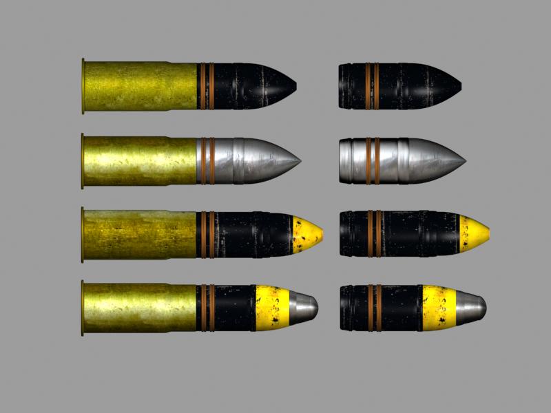 | Existían cuatro tipos de proyectiles para este cañón: |