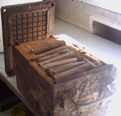 Esta mina se trataba de una caja metálica, herméticamente cerrada, que se llenaba con cartuchos de dinamita.