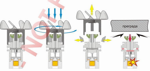 Comparación entre dos tipos distintos de esta espoleta en la que se ve el primer gráfico sin muelle y el segundo con el. Este último gráfico extraído del manual АТЛАС КОНСТРУКЦИЙ БОЕПРИПАС АРТИЛЛЕРИИ И АВИАЦИИ