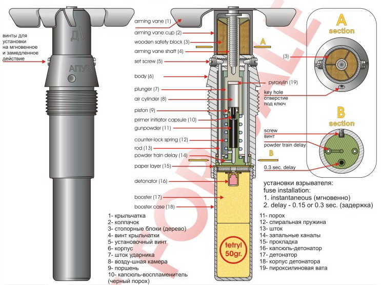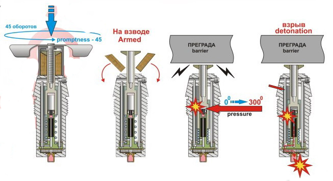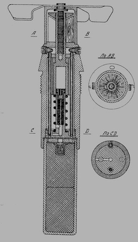 en el cuerpo de la espoleta; "M" para instantáneo y "3"