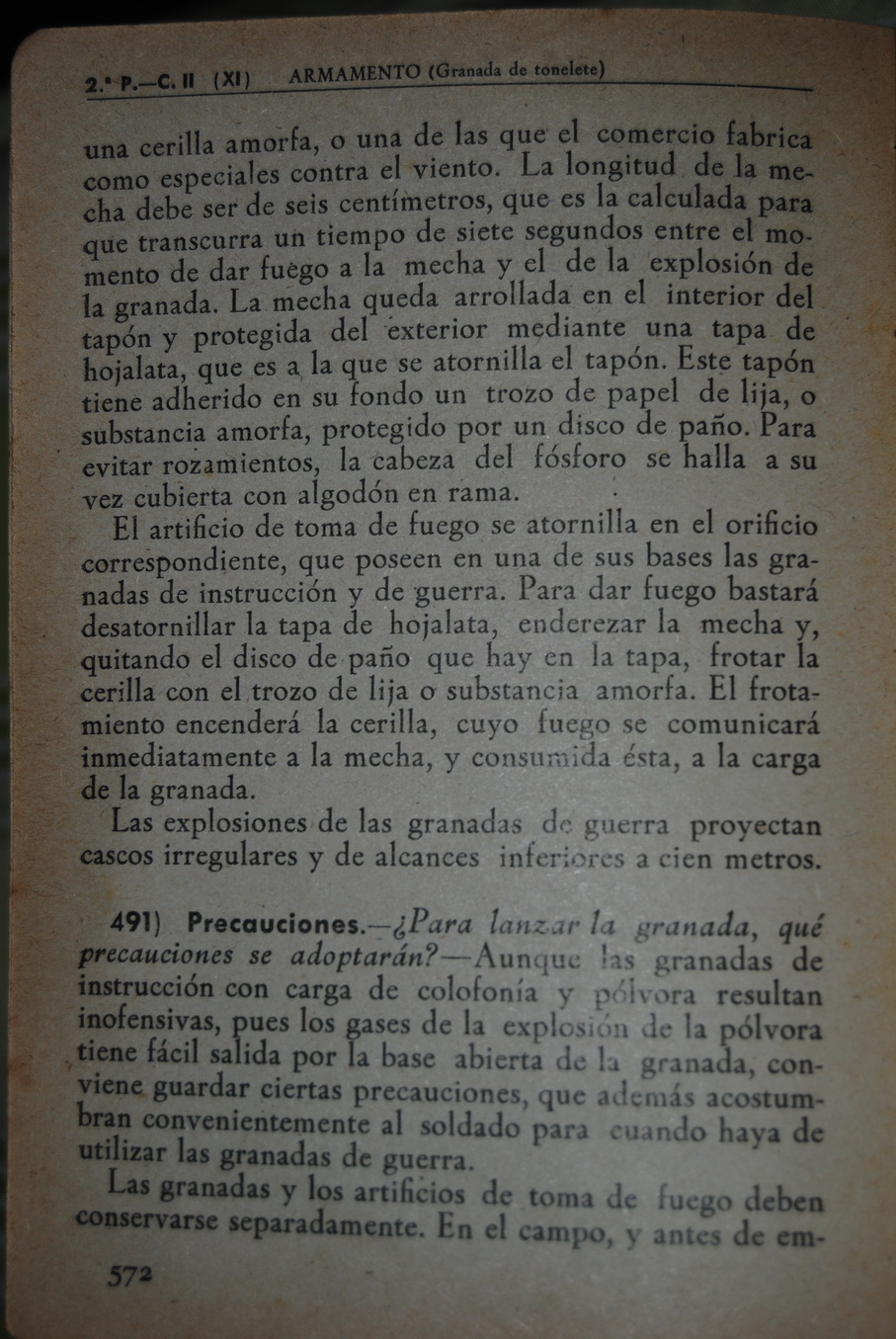 | Nuestro amigo Forestal nos manda imágenes de un manual militar donde se describe la granada Tonelete. El manual militar es "Compendio militar del Cabo de Infantería", publicado en Mallorca en 1938. | |||