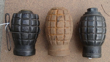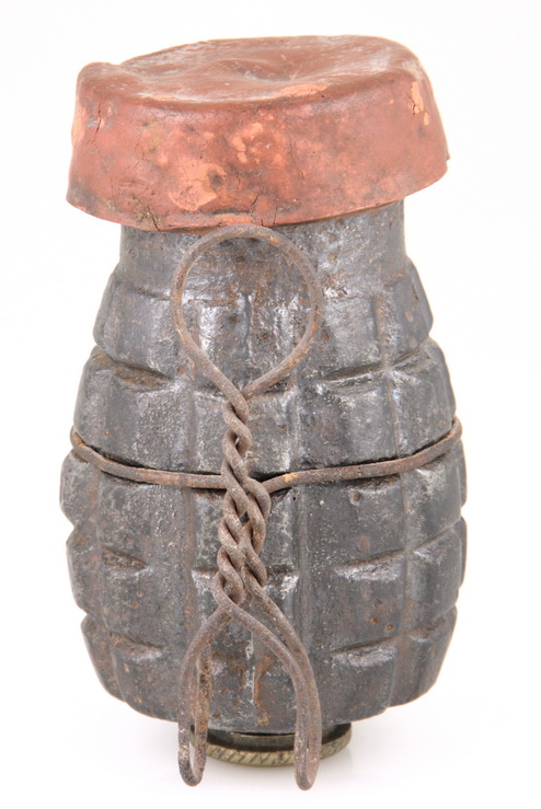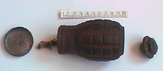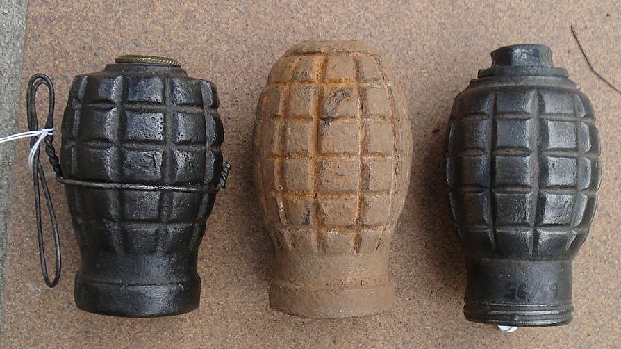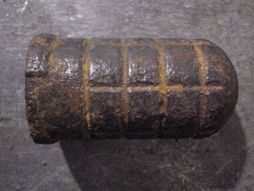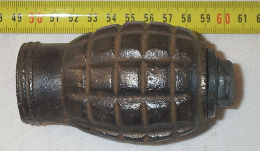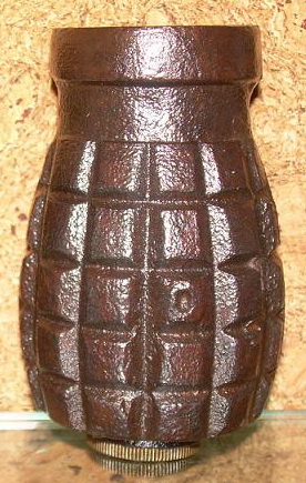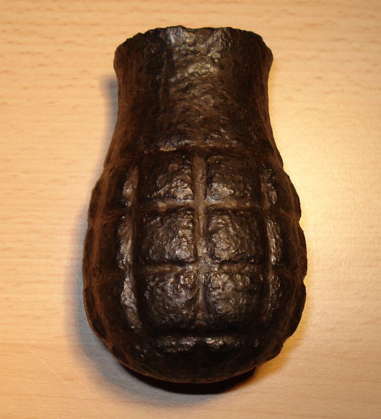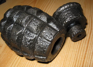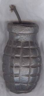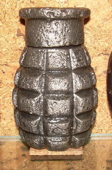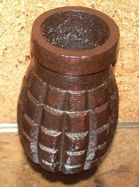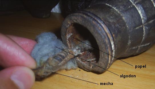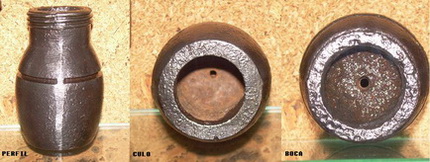 una fotografía de una granada tonelete de origen republicano que, en vez de