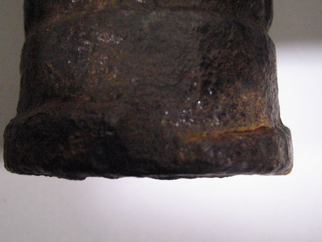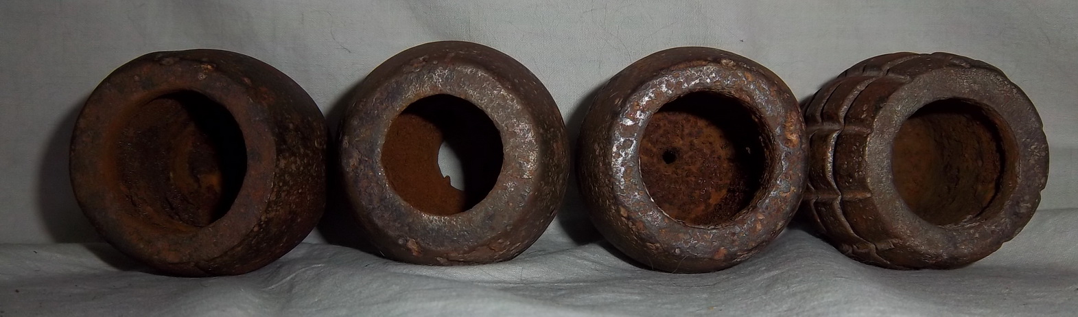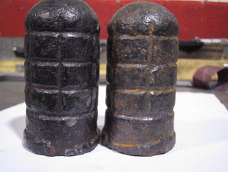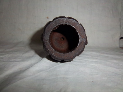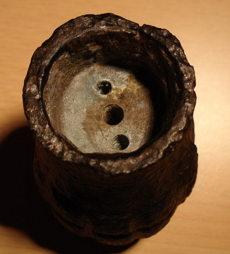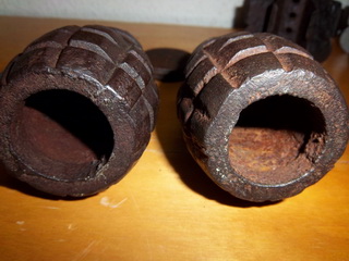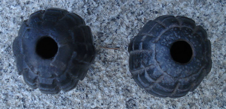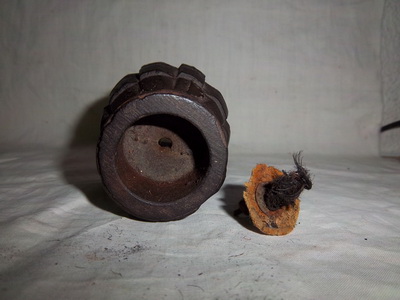 Otra variante de la Granada Tonelete es la que nos ha remitido Belenos, que como podéis observar tiene 72 (12x6) segmentos o tacos, tiene orificio de carga en su base, y como otras granadas Tonelete Republicanas, el cuello de la granada, donde se aloja los elementos iniciadores, no estaba roscado.