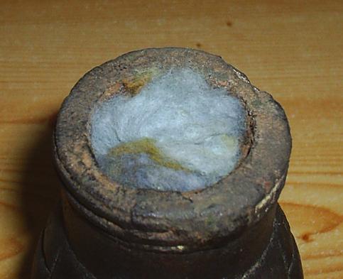 Como esta "boina" se introducía a presión, la parte superior del cuello de la granada no estaba roscada sino que presentaba un nervio que mejoraba la sujeción, como podemos ver en las fotos de detalle que nos envía David.