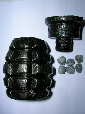 en el interior de esta granada 6 bolas de plomo, de fabricación bastante