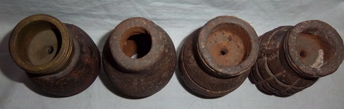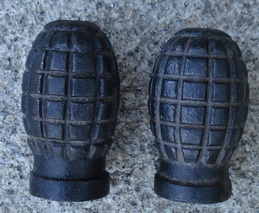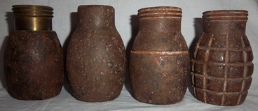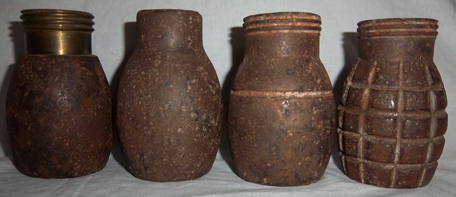 Miguelon nos ha mandado mas información sobre este tipo de granadas, mas concretamente, sobre las granadas Tonelete de Instrucción. Como podéis ver hay un modelo hasta ahora desconocido, concretamente, el segundo ejemplar empezando por la izquierda, la que no tiene rosca en su parte superior. Gracias Miguel, una vez mas, por tu colaboración.