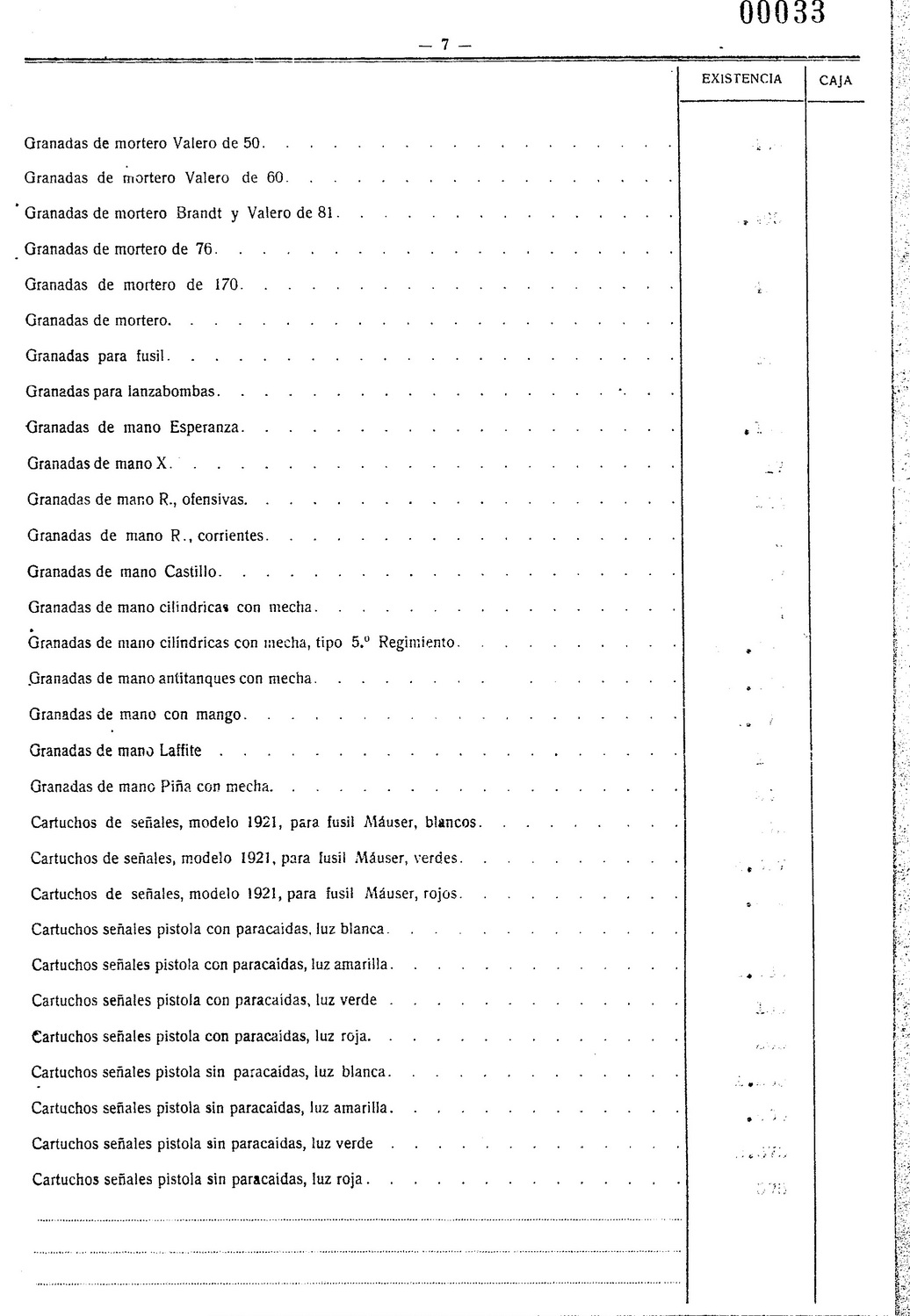 Granada defensiva reglamentaria en el Ejercito Español desde 1918 (Real Orden de 11 Mayo de 1918, Diario Oficial número 107) fue ampliamente utilizada durante las campañas africanas. En un principio existían tres modelos, el llamado número 1 o de guerra, el denominado número 2 o de instrucción y finalmente la granada de ejercicios. Originalmente estaba compuesta por: