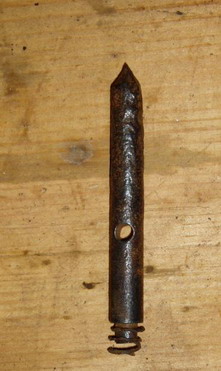 en un percutor con su muelle real sujeto a una chapa que se asegura con