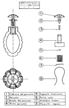 GRANADA DE MANO CON ESPOLETA DE PERCUSIÓN CON RETARDO o "CHAMPIÑÓN" |