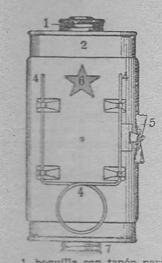 " Observo cierta extrañeza hacia el empleo en España de Lafittes con estrella de cinco puntas en la chapa y tapones cortos con moleteado, no obstante, la "reglamentaria" era precisamente esa. Te acompaño lámina de la que aparece en el "Libro Militar para todos los reclutas" de 1936,que coincide por otra parte con la que aparece en el Anexo VIII al Reglamento para la instrucción de tiro con armas portátiles de 1927 dedicado a "Nomenclatura, descripción sumaria y entretenimiento de las granadas de mano y fusil". En un plano práctico, he visto además una de esas Lafitte recuperada de la zona de la batalla del Jarama, de la que, aparte de la estrellita y los peculiares tapones, me quedé con la impresión de que era algo más corta (de hecho en la descripción del manual se le da una longitud de 12 cms). Otra cosa es que de hecho no es nada corriente si la comparamos con las cantidades que se ven de las otras, pero utilizarse en España, se utilizó. Por otra parte, la estrella, la cruz, la bombeta, una mancha de pintura o un sello en esa posición de la chapa tienen solo el objeto de señalar donde debe apoyar el dedo pulgar de una mano mientras con la otra se extraía la horquilla para manipularla correctamente antes de lanzarla. Según los tiempos, medios, y las sensibilidades del espectador supongo que se irían eligiendo las marcas a utilizar. Las estrellas de cinco puntas huelga decir que no eran ni invento ni de uso privativo de la URSS."