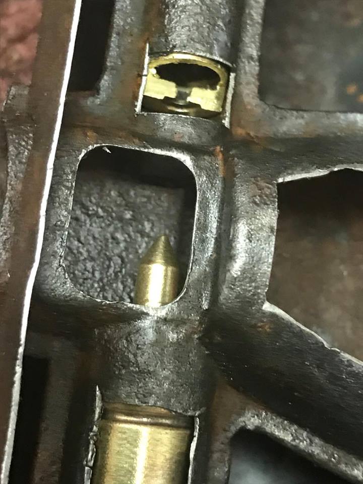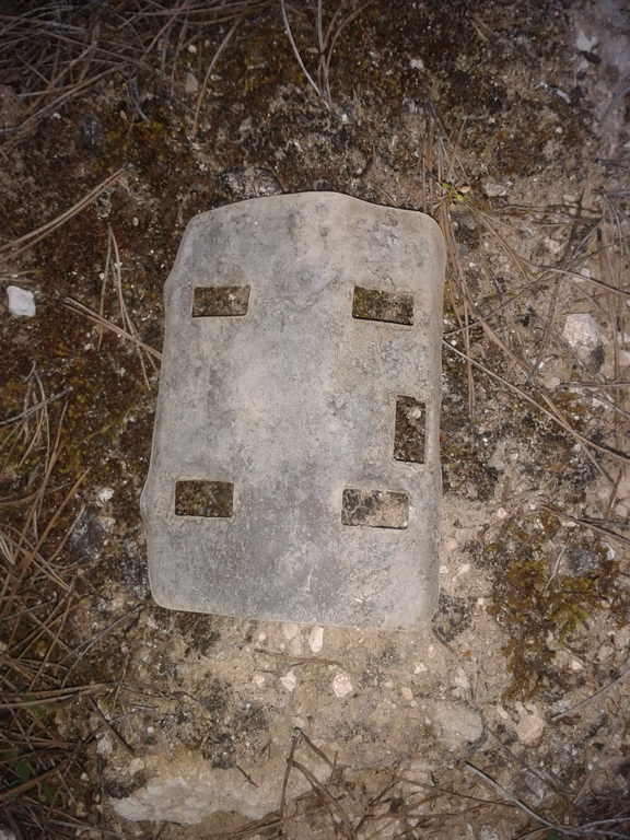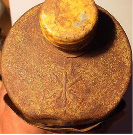 Daniel nos informa que ha encontrado sobre la pieza de seguridad de esta granada, varios símbolos, que pudieran ser pintados. Estos símbolos son una bombeta, similar al distintivo de Artillería de Ejercito Español y una Cruz Latina. (Gracias, Daniel)