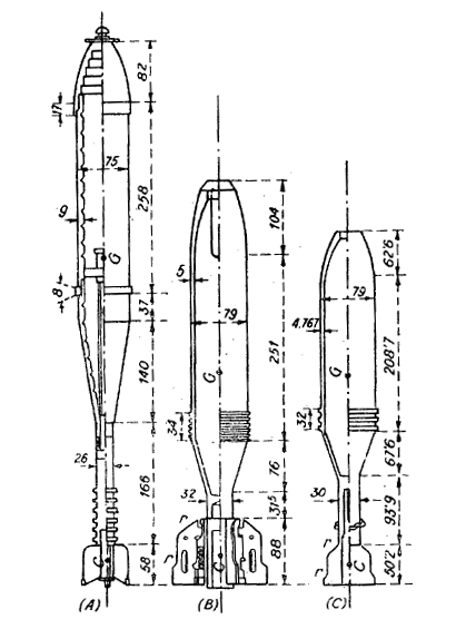 granadas de mortero que nos interesan. Esas granadas creo que son Granadas de Mortero Brandt , calibre 81 mm. de Gran Capacidad. Los morteros, de izquierda a derecha son: