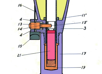 | Este seguro de interposición es bastante similar al utilizado en el "Sistema Valero" pero se sustituye la galleta de pólvora que tantos fallos provocaba, por una masa de plomo, en forma de media luna que gracias a unos tirantillos o cables de acero inmovilizan un vastago que impide que portacebo se mueva. | |