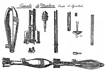 | Tres fueron las patentes que presentó el Teniente Coronel Don Carlos Rodríguez Medina en Octubre de 1938. Una de ellas fue sobre la Granada de Mano modelo CS, que puedes ver en el enlace correspondiente de la sección Granadas de Mano, mientras que los otros dos se corresponden a un mortero ligero de Infantería y a la granada que utilizaba. |