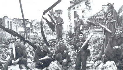 Tropas de ejercito nacional en Oviedo, con las granada de mortero Valero incendiaria (Aportada por Belenos)