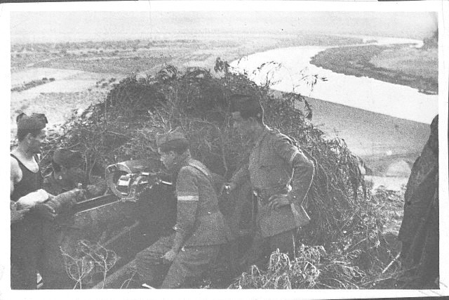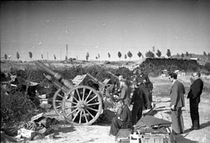 Obus Vickers de 105/22 en Toledo, disparando al Alcazar |