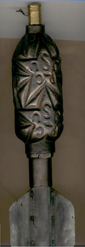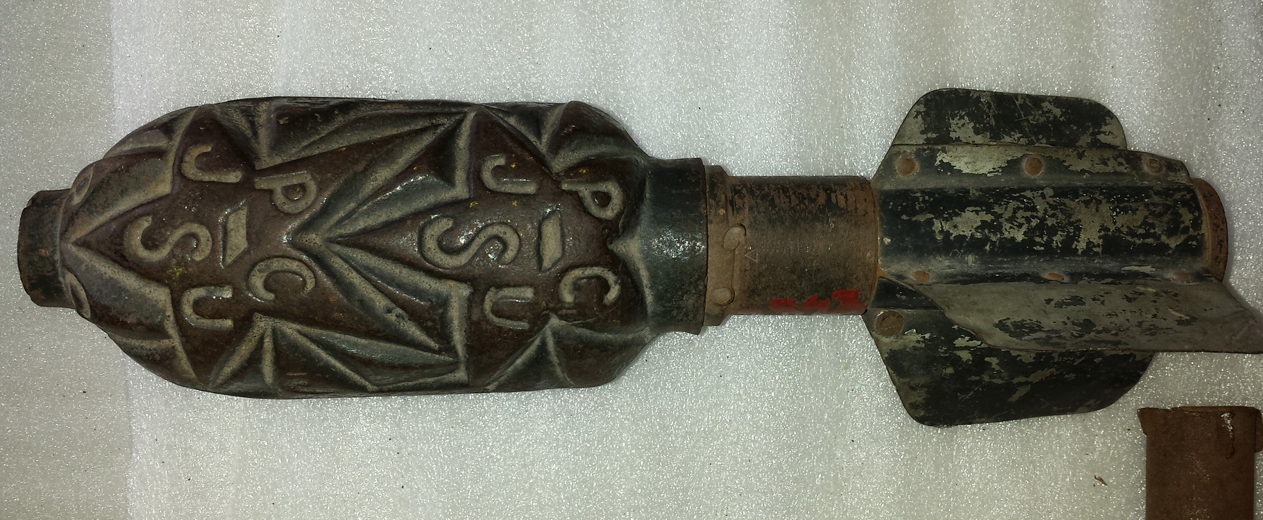 Esta granada, usadas en los lanzabombas de trinchera, también llamados Stoke o de espiga, según quieras llamarlos, por su bonita configuración exterior son muy apreciadas por los amantes de Historia del armamento usado durante la Guerra Civil. Seguramente no se fabricó en grandes cantidades ya que su producción exigía una mayor dedicación que una granada de lanzabombas "normal" y posiblemente los ejemplares que se fabricaron lo fueron para exposiciones, propaganda o como publicidad. No hemos podido documentar exactamente el lugar donde fue producida aunque por las marcas que lleva es evidente que se hizo en algún taller controlado por el P.C., Partido Comunista y por la J.S.U., Juventudes Socialistas Unificadas como por ejemplo la Central Metalúrgica Ferrobellum.
