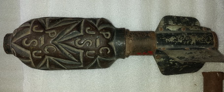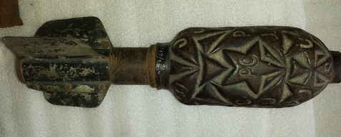 Lluis, administrador de la página web http://www.laretirada.com/ nos ha mandado unas excelentes fotografías de esta granada para lanzabombas depositada en el Museo Etnográfico de Ripoll (www.museuderipoll.org). Para verlas en detalle, pulsa sobre ellas. Gracias, Lluis, en nombre de todos. |