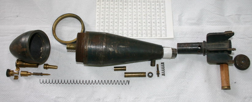 | Las granadas de mortero "Valero" de 50 mm. y de 81 mm. portan una espoleta de funcionamiento idéntico, diferenciándose entre si, por pequeños detalles y por el distintos tamaño de sus elementos. En la sección Granadas de Mortero de esta pagina web ya hemos explicado someramente su funcionamiento, pero debido a que es un sistema de invención española y de su gran utilización durante la guerra, queremos explicarlo con detalle. |