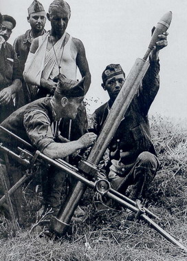 | Posteriormente, en función del alcance que se quisiera dar a la granada, además de regular el ángulo de inclinación del mortero, se utilizaban los llamados "suplementos". Estos suplementos tienen forma de herradura y estaban llenos de pólvora. Se colocan en el tubo de la cola de la granada. Sin suplemento el alcance de una granada de 81 mm es aproximadamente 140 metros. | |
