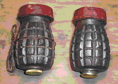 muestra dos granadas Tonelete de origen republicano, que tienen como