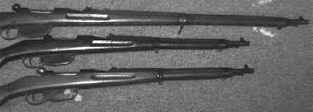 Este fusil fue otro de los rocambolescos productos adquiridos por el Gobierno Republicano. Como casi siempre, su calibre, el 8x50R mm., era extraño a los fabricados en nuestro país, lo que hacia depender la adquisición de municiones a las difíciles compras que se pudieran realizar en el exterior. En la fotografía inferior, podemos ver en primer lugar el fusil, y debajo de él, dos modelos de carabinas, la 95 y la 95/34 (este último modelo de fusil no fue utilizado en nuestra Guerra Civil, según nos informa Andrés). |