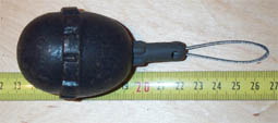 EIERHANDGRANATE mod 1917 con iniciador modelo 1915. Este iniciador NO fue utilizado, hasta donde sabemos; en nuestra Guerra Civil. Fotografía facilitada por Ramón.