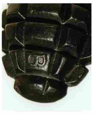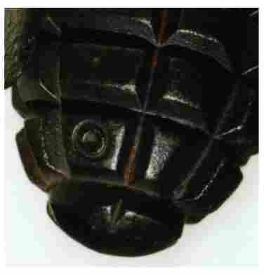 | La granada de la foto superior, es de cuatro segmentos en vez de 5 y es también polaca y llevaba la espoleta WZ-GR-31, aunque es muy poco frecuente. Es similar al cuerpo de la Rusa que también es de 4 segmentos pero la polaca es mas pequeña y alargada, la base es plana y lleva un tapón de carga en la base sujetado con un pasador, mientras que la rusa lleva un tornillo de carga. | |
