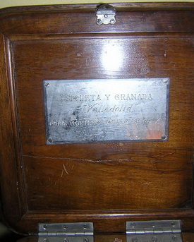 Hoplita nos envía esta fotografía que apareció en www.todocoleccion.net. En ella se puede leer en la placa: Espoleta y Granada Valladolid, para mortero Brixia de 45 mm.